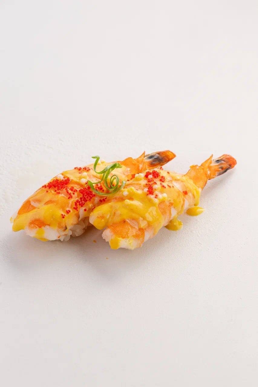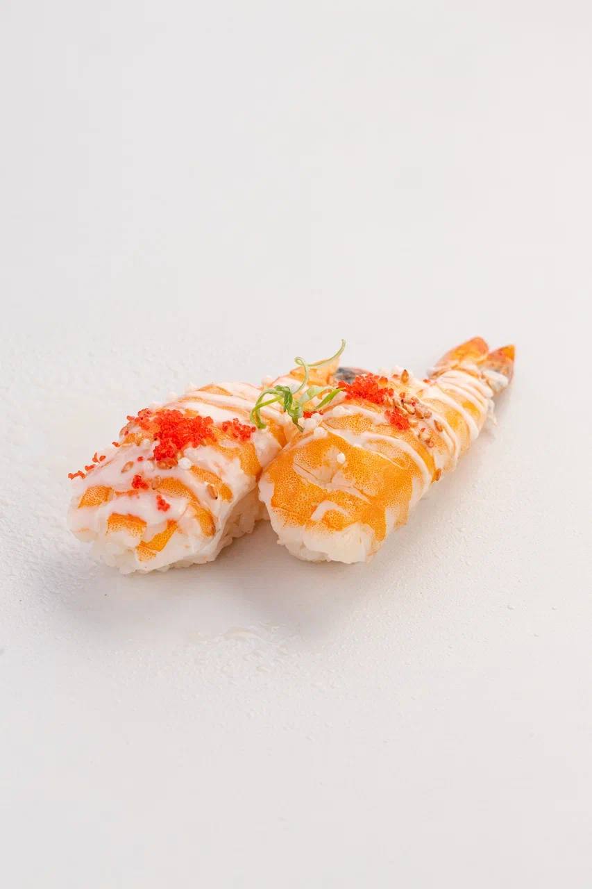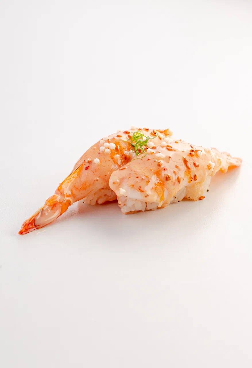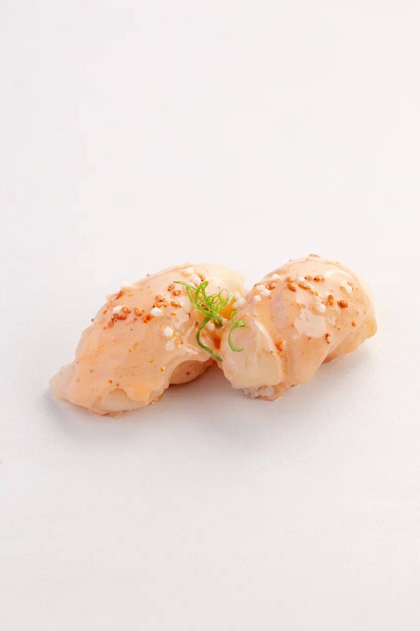 Гребешок, рис, васаби, соус спайси, шичими тогараши, водоросли нори.