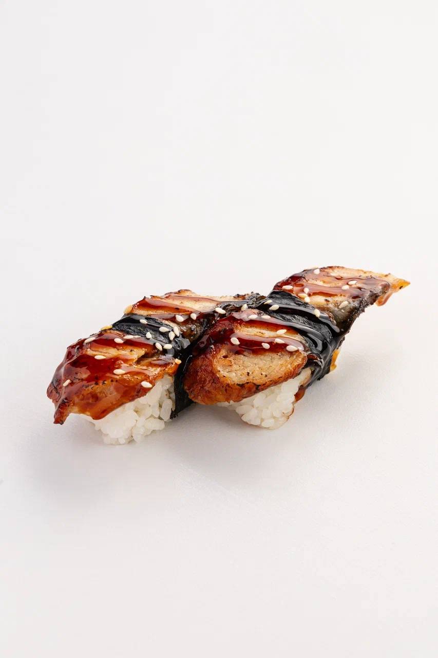 Гребешок, рис, васаби, соусы спайси и унаги, кунжут, водоросли нори, кумкват.