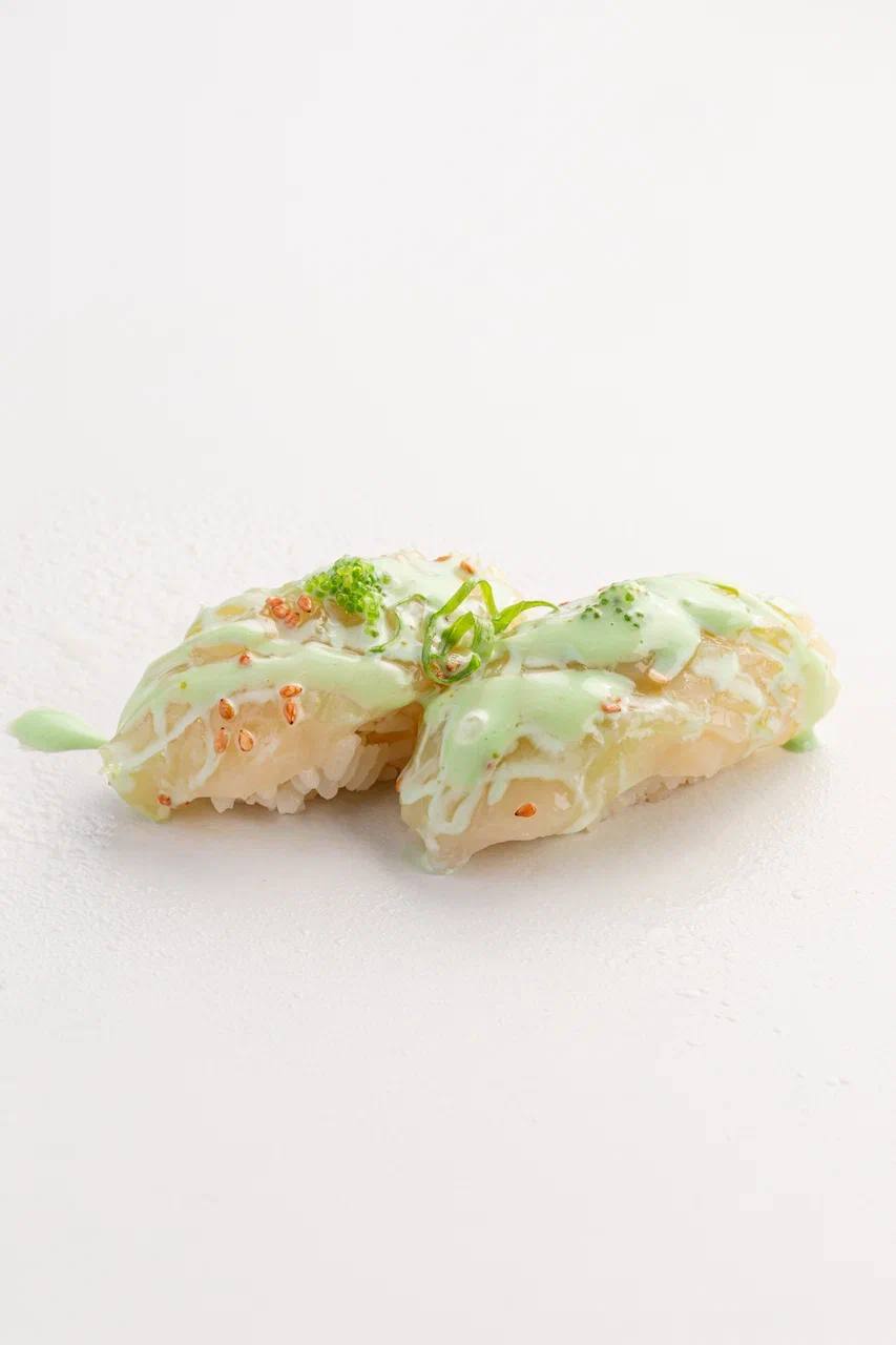 Гребешок, рис, васаби, трюфельный айоли, кунжут, водоросли нори.